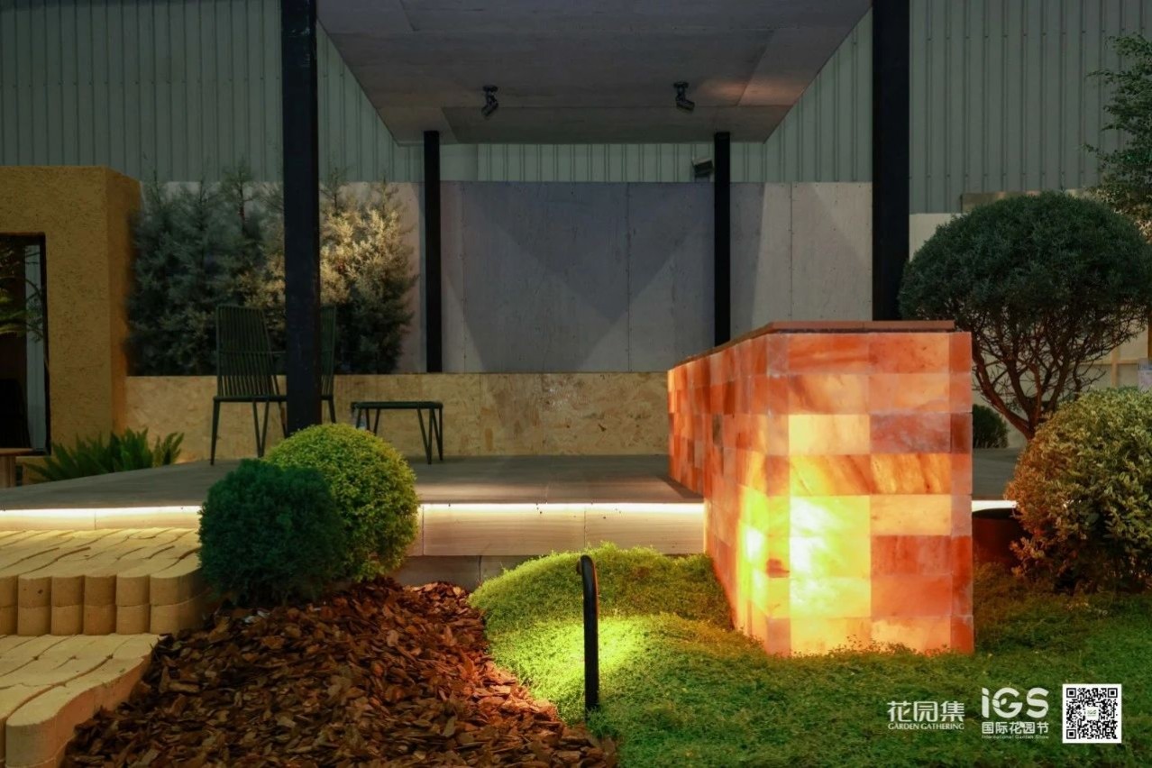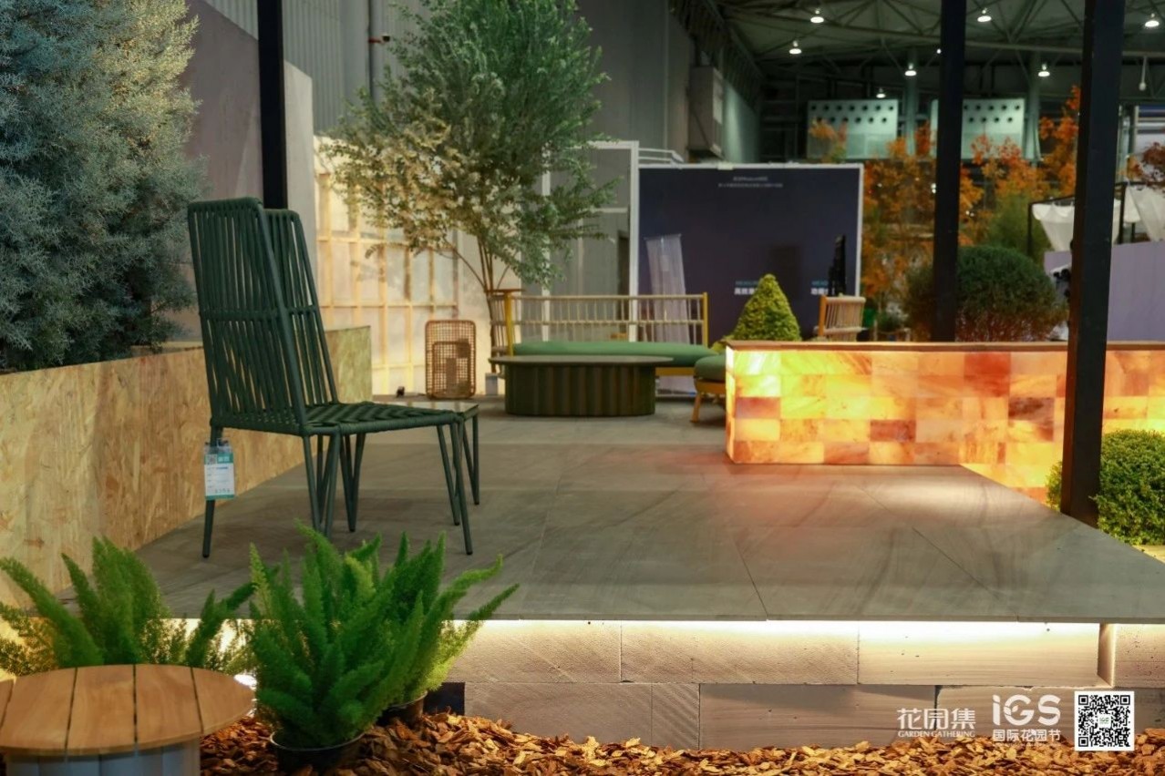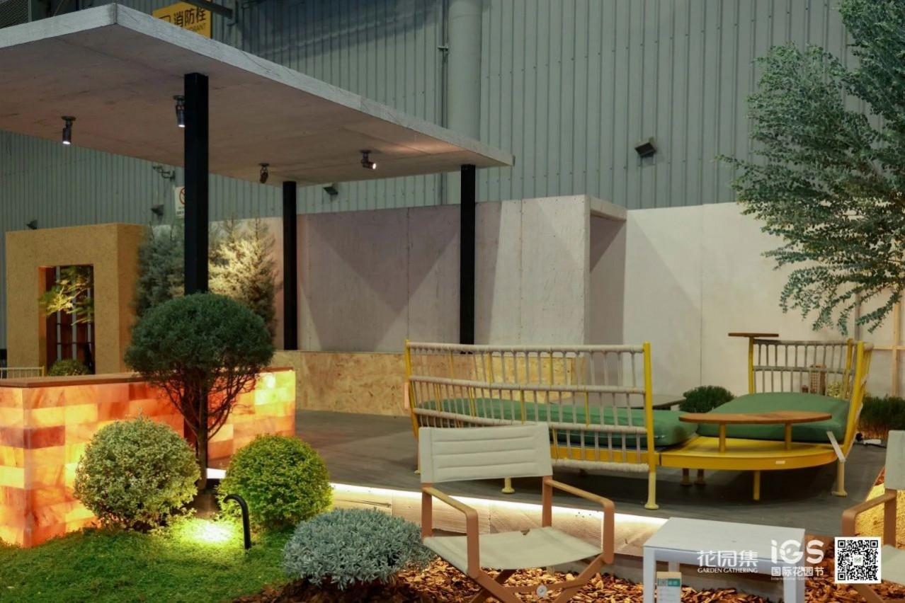 空間承載并展示了休閑、聚會、烤火等庭院常用的三大功能。這樣的展示設計貼近生活,詮釋了花園的生活意義。