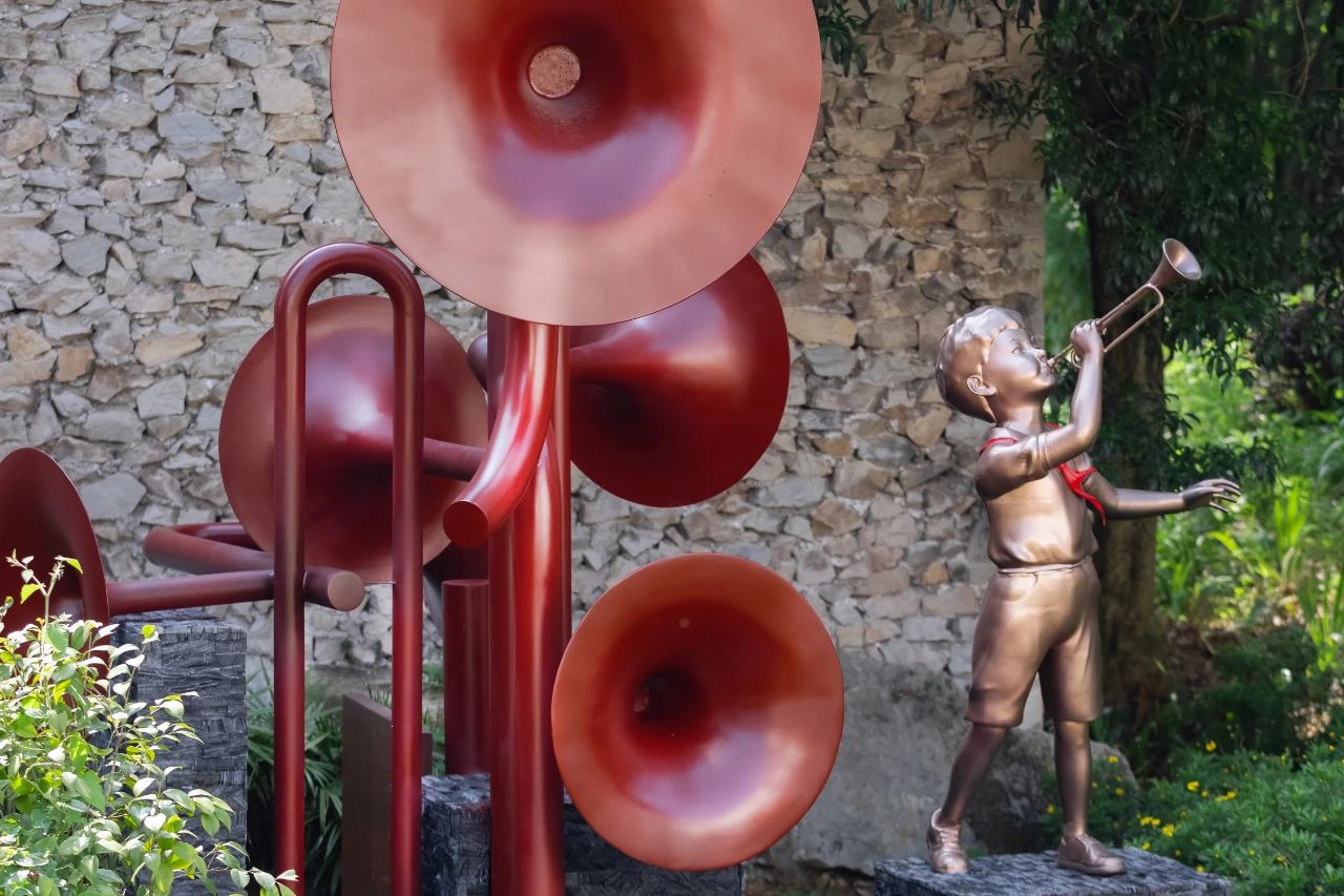 “小龍自小受到軍人爺爺和當地村民的抗戰精神熏陶,心懷保家衛國的信念。因為年齡尚小,小龍便將司號員作為自己的目標,手舉黃銅號角勤奮練習,將各種作戰樂譜牢記在心。每當到了趕場日,懂事的小龍會來到商販云集的市場賣魚補貼家用,人聲鼎沸的環境承載著人們對美好生活的向往。平日里,小龍也和其他孩子一樣,會與村子里的各種小動物成為玩伴,也會獨自坐在黃葛樹下暢想未來……”